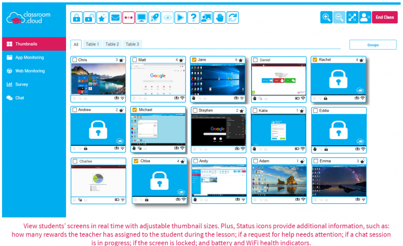 Uno dei maggiori problemi legati all’adozione della tecnologia è quanto sia facile da usare in classe per gli insegnanti. Non con classroom.cloud! Suo progettato, provato e testato con gli insegnanti per garantire un’interfaccia facile da usare che facilita le attività didattiche. Vuoi aprire una determinata pagina web sui dispositivi dei tuoi alunni con soli pochi clic? Ecco fatto! Vuoi vedere cosa stanno facendo gli studenti usando un dashboard facile da visualizzare? Eccolo qua!