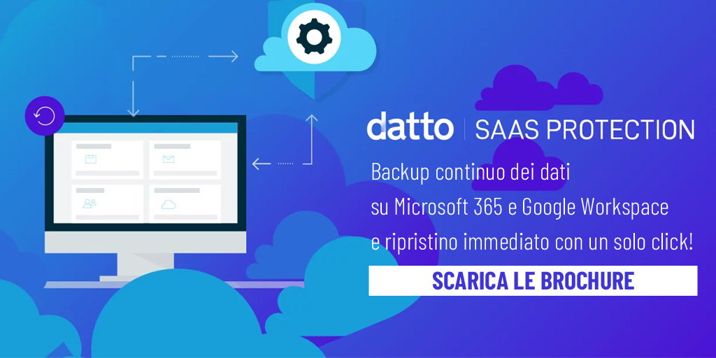 Backup e ripristino immediato e completo – da un unico pannello – per i dati cloud critici risiedenti nelle applicazioni Microsoft 365 e Google Workspace come posta elettronica e documenti, proteggendo non solo file e cartelle, ma anche strumenti di collaborazione come Microsoft Teams, SharePoint, OneDrive e Google Drive. Scegliere Datto SaaS Protection significa che puoi aiutare i tuoi clienti a soddisfare i requisiti di continuità aziendale, conformità e sicurezza.